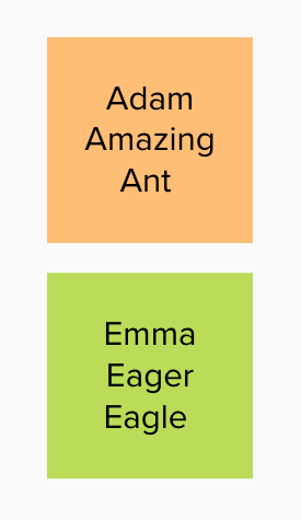 Creative exercise that will require a bit more time for team to finish. Ask each person on a call to say their name and from a first letter of their name write down adjective and an animal.
