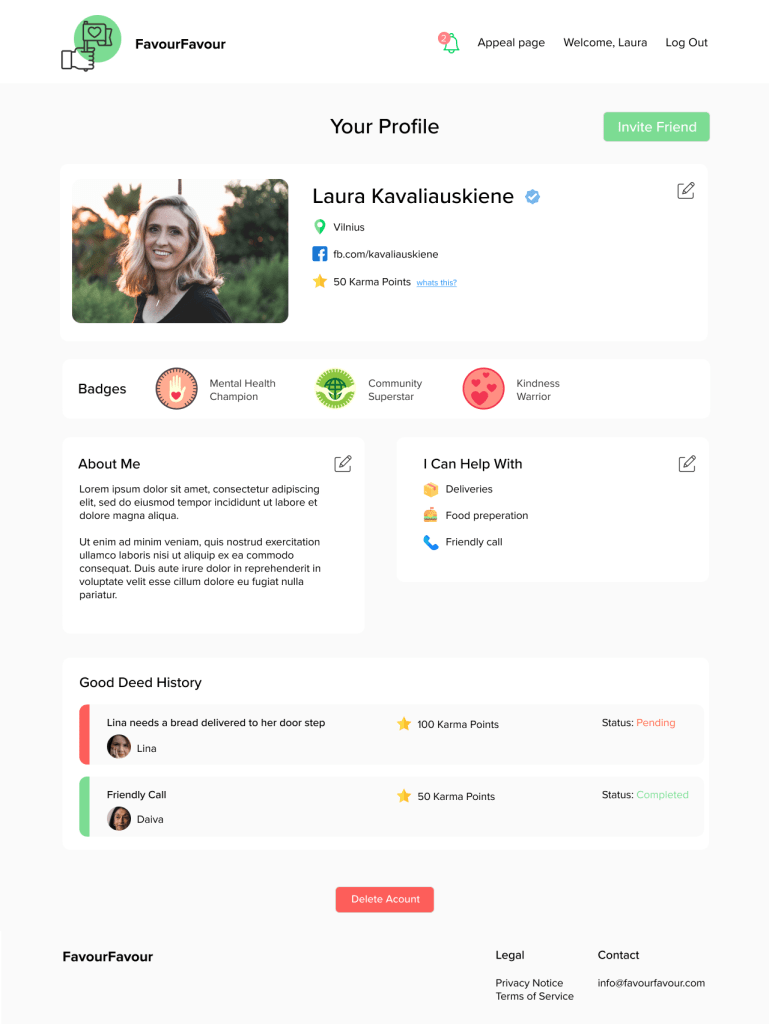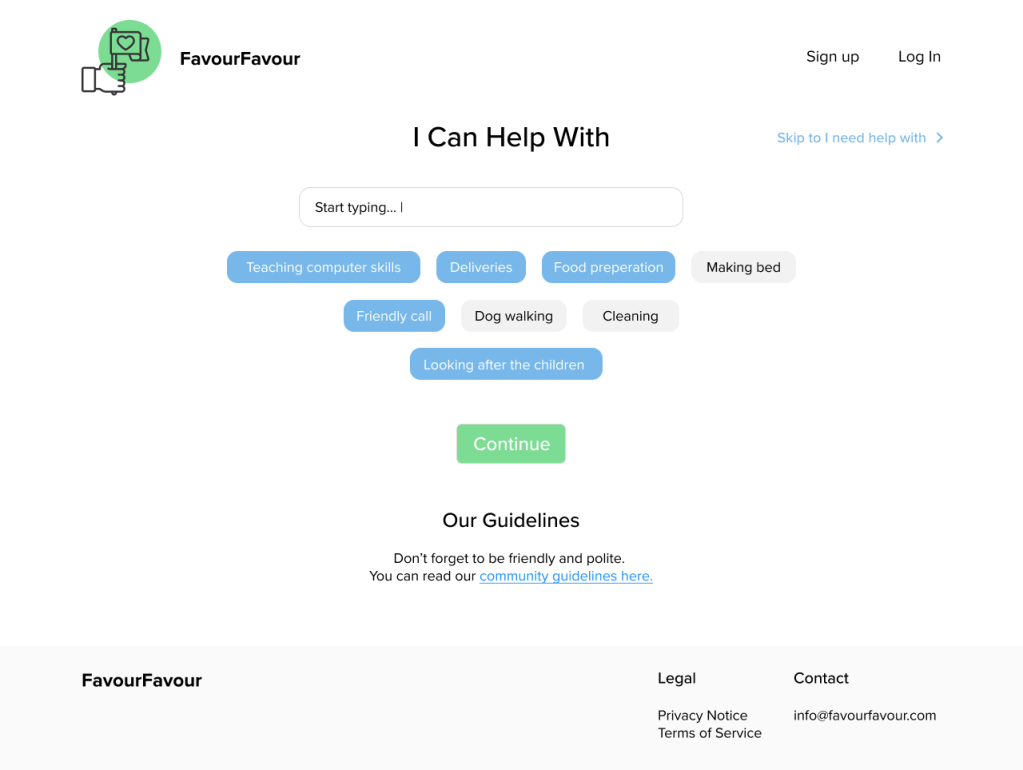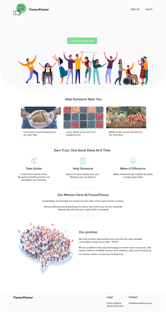 In March 2020, during the epidemic, I participated in the hackaton called “Hack the crisis”. Me and group of developers came up with an idea and had a weekend to deliver a MVP. We worked really hard during the weekend creating not only UX journey, website https://favourfavour.com/login , I also was tasked to create a video.