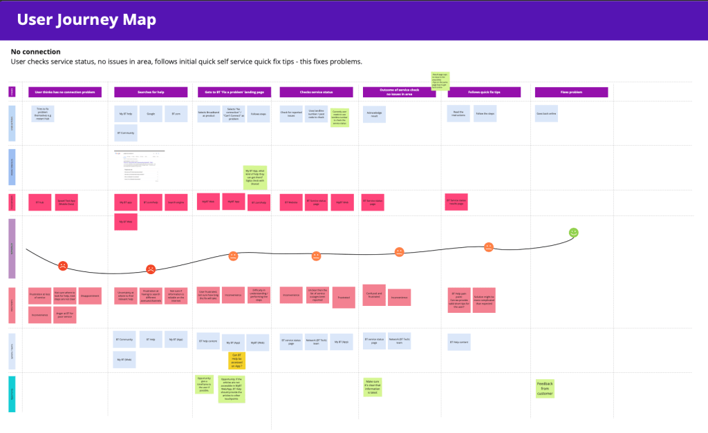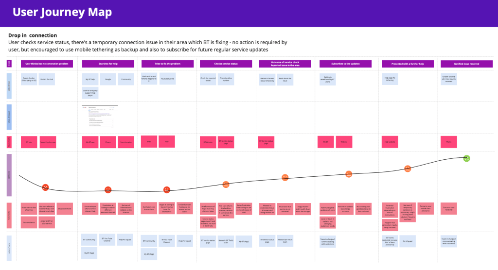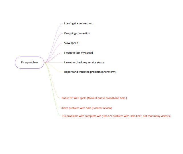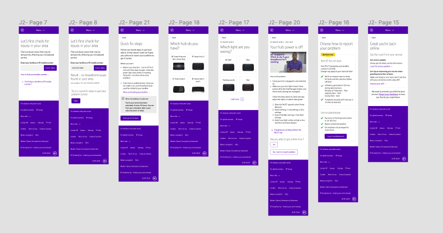 With more and more customers working from home, there was a spike in customers contacting BT, their wifi was down or underperforming. We got this data from contact centres. After a quick look at Adobe Analytics, I noticed that there is no clear journey to fix the broadband issue, users kept getting stuck in a loop after reading multiple articles. Moreover, a lot of articles were out of date.