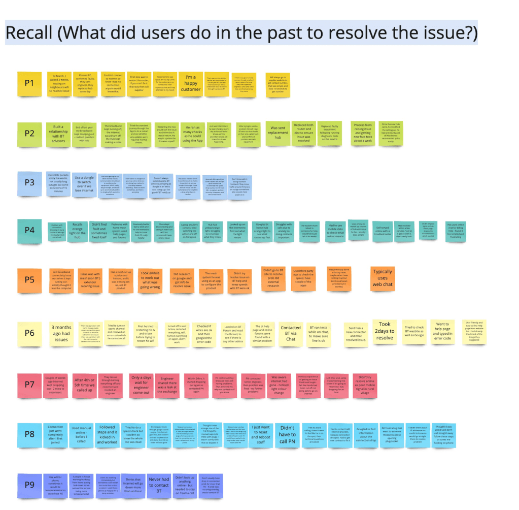 We decided to interview 10 BT customers to understand their past experiences. We also decided to give participants tasks to complete on the live site.