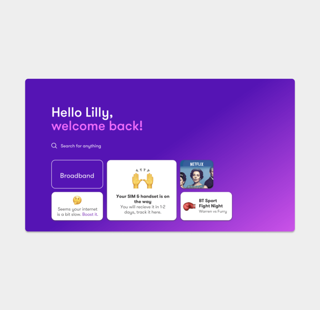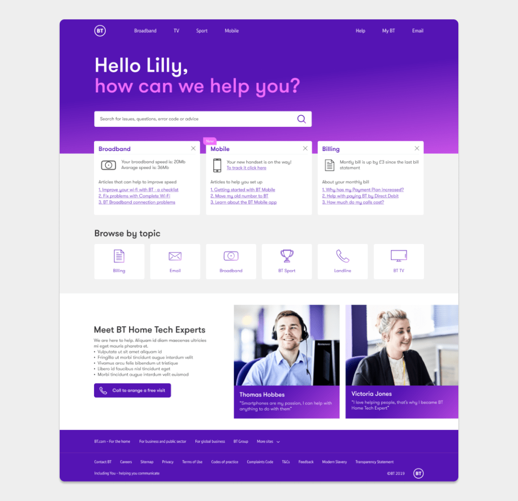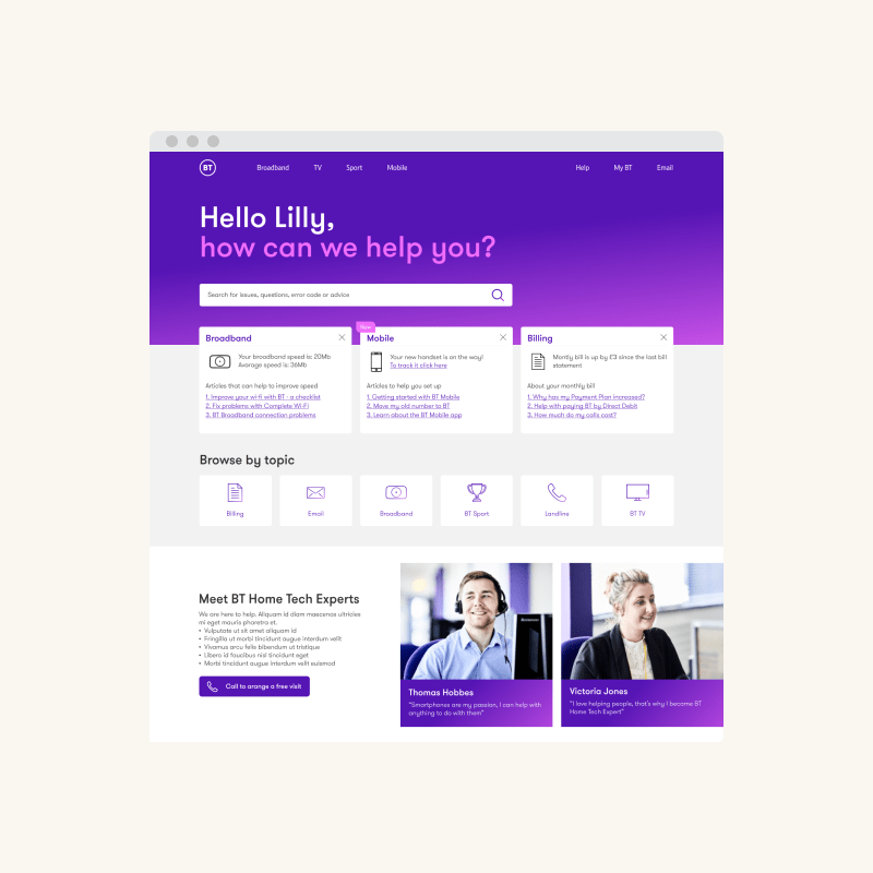 Working for BT- the focus was on the connectivity and issues with it. We found out the users don’t want to spend time looking for information how to fix broadband, they wanted it to be fixed before they noticed the problem.